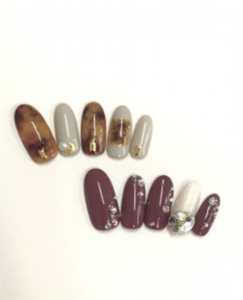 クールで大人っぽいべっ甲ネイルとエレガントなストーンネイルは、今シーズンのイチオシ。