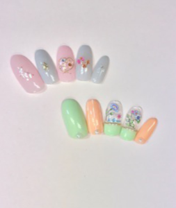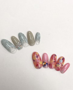 淡いピンクとグリーンのやさしい色合いの空間で、リラックスしながら施術を受けられるネイルサロン。国産の高品質のジェルを使用しているから、ツヤが美しく、はがれにくいのが特徴です。ジェルを塗った後は、ケラチン、ビタミンH、 カルシウムなどが配合されたネイル美容液と、キューティクルオイルでしっかりケア。ジェルをしながら自爪のケアもできるから、続けていくうちに、爪が強く しなやかになり、折れにくくなったという声も多いそう。LINEでも問い合わせや予約ができるので、まずは気軽に連絡をしてみて。