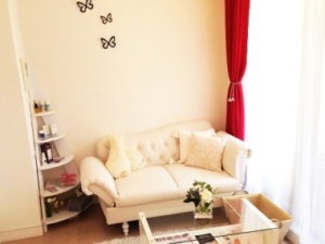 お客さまに、のんびりと快適に過ごして頂きたいと用意された大きなリクライニングチェア。指先の仕上がりだけでなく、キレイに仕上がっていく時間も楽しむのが大人女子♪デザイナーズマンションの一室を使ったプライベート空間で、贅沢な時間を体験出来ます。
