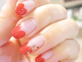 ぷっくりとした女性らしい印象の中にも、大人っぽさが光るハートフレンチは、ラインストーンとイニシャルでしっかり自己主張も♡クリスマスやバレンタインなど、大人女子の特別な日をさらに彩る、とっておきネイルです。人気はやはり、定番の赤。