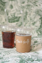 今年4月からの新しいサービス。お帰りの際にテイクアウトのドリンクサービス。