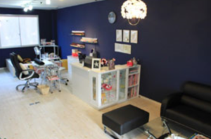 ネイビーの壁と白いフローリングが好評で店内は明るすぎない照明でリラックスして頂けます。キッズスペース併設でお子様連れも安心。営業時間外も相談できるのでお気軽にどうぞ♪